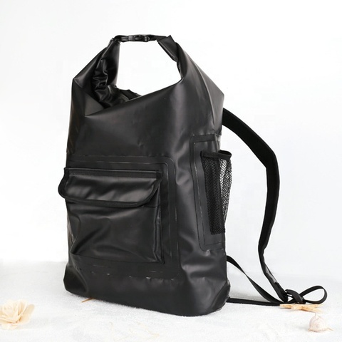 カスタムロゴPVC防水バックパックドライバッグダイビングリュックサックジッパーとメッシュボトルポケット付き