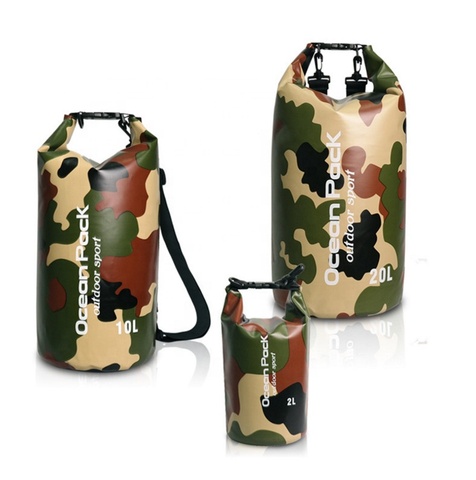 新しい防水製品迷彩オーシャンドライバッグカスタムデザインロゴロールトップバックサック