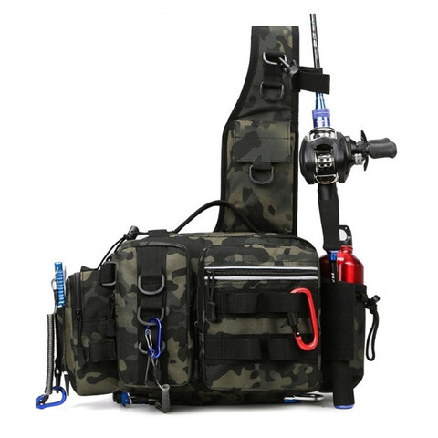 ショルダー釣りバッグクロスボディバッグ釣りタックルバックパックボックスロッド & ギアホルダー付き軽量スリングタックル収納バッグ